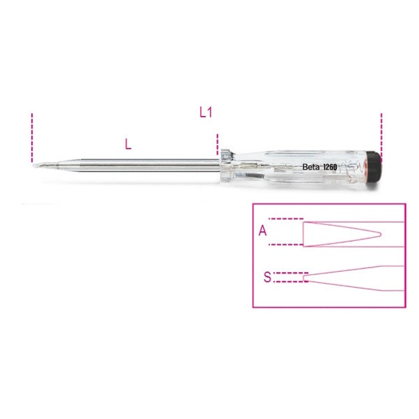 Beta giravite cercafase 150/250V art.1253. Lama in acciaio, punta a taglio. Specifiche articolo Attributo Valore Misura mm. 0,5x3,5x100 L (mm.)... Per saperne di più