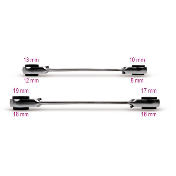 Beta serie di 2 chiavi poligonali doppie diritte a cricchetto reversibili art.192/S2.