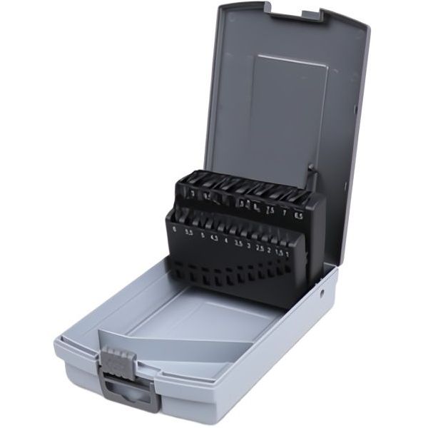 Può contenere 25 punte in HSS da diametro 1 mm. al diametro 13 mm.
