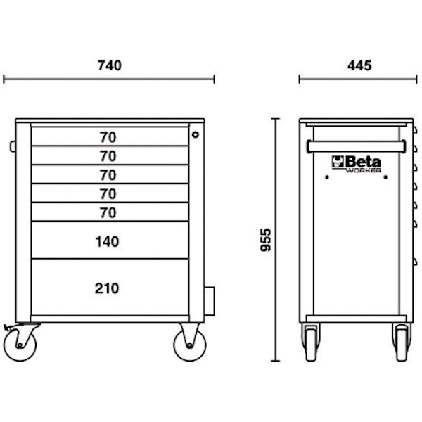 Beta cassettiera mobile con 7 cassetti completa di 309 utensili mod.WORKER art.BW 2400S 7/E-M.