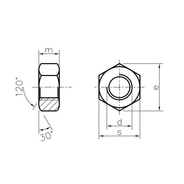 Dadi esagonali medi con filettatura metrica ISO a passo grosso.