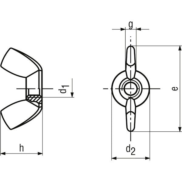 DADO AD ALETTE IN ACCIAIO INOX A2 UNI 5448-A