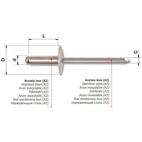 FAR RIVETTI IN ACCIAIO INOX A2 A TESTA LARGA