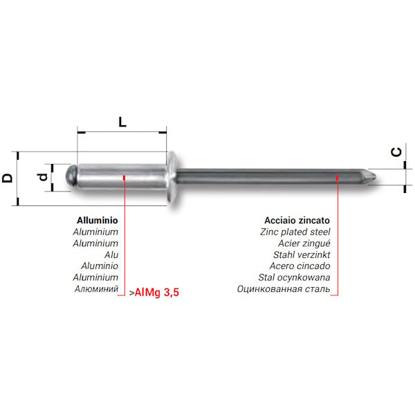 FAR RIVETTI IN LEGA DI ALLUMINIO D.MM4,8X40
