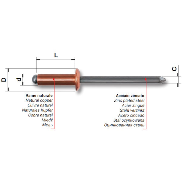 Far rivetti a strappo testa cilindrica in rame naturale. Rivetti a strappo venduti sfusi. (la confezione è da 500 pezzi).... Per saperne di più
