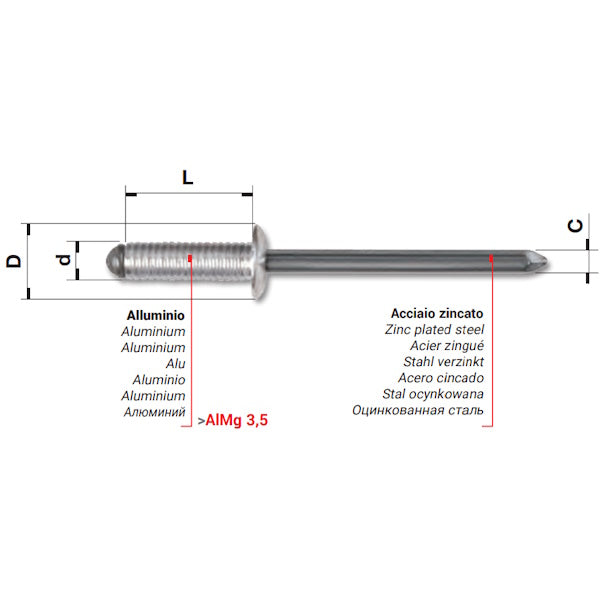 FAR RIVETTI RULLATI IN LEGA DI ALLUMINIO D.MM5,0X35