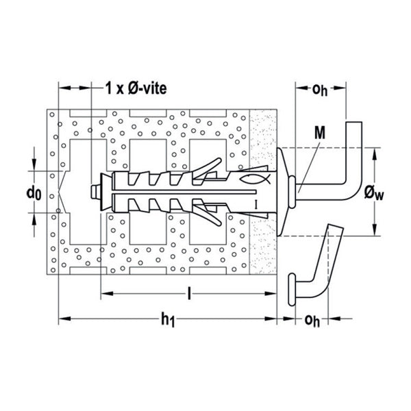 Fischer tassello SB 12/10 in nylon con gancio piatto regolabile con vite. L'espansione completa del fissaggio a due settori fornisce... Per saperne di più