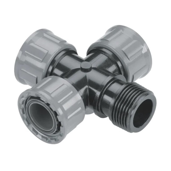 Gardena raccordo valvola a croce art.02750-20. Per collegare facilmente l’elettrovalvola. Raccordo con 3 filettature da 1" femmina e 1 filettatura... Per saperne di più