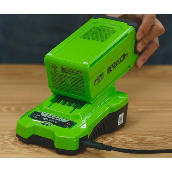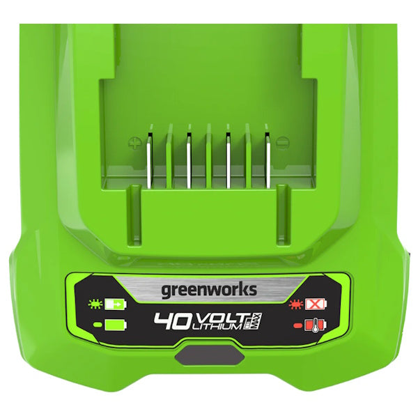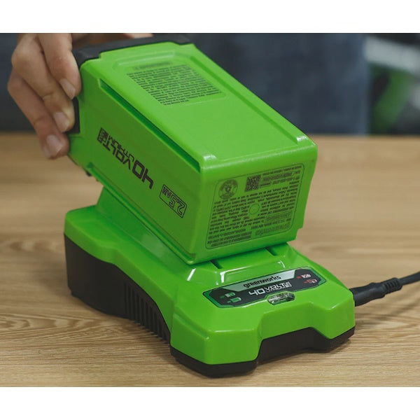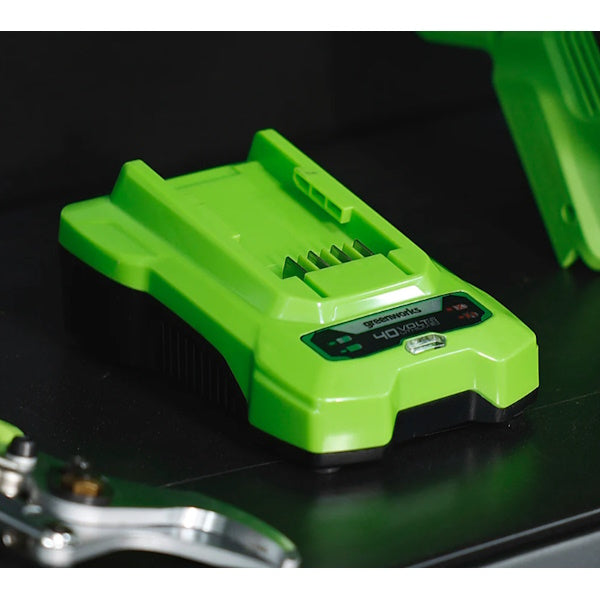 Greenworks caricabatterie mod.G40C. Display LED per indicare lo stato della batteria. Cavo di alimentazione staccabile per l'utilizzo con diverse prese... Per saperne di più