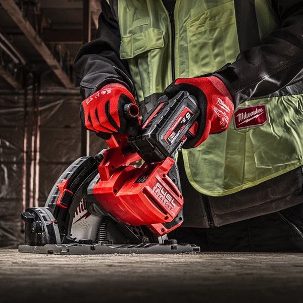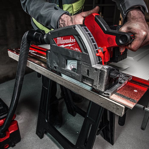 • La sega ad affondamento M18 FUEL" garantisce le stesse performance di un modello a filo. La sega taglia 45 m di compensato, spessore 18 mm con una batteria da 5.5 Ah.