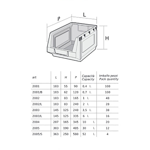 Mobil Plastic contenitore in plastica mod.2001. Contenitore a bocca di lupo sovrapponibile ed impilabile, dotato di linguetta per aggancio nella... Per saperne di più