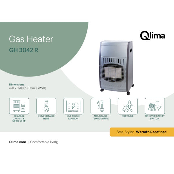 QLIMA STUFA A GAS CLASSICA PORTATILE DA INTERNO GH 3042 R