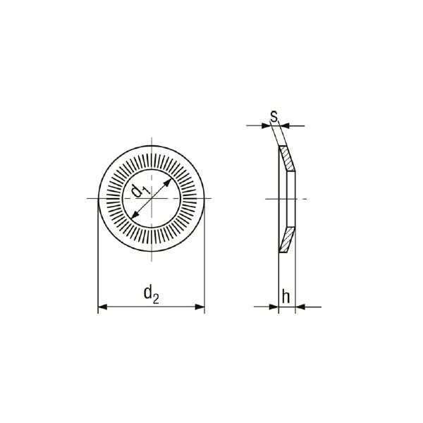 Rondelle contact elastiche coniche zigrinate in acciaio inox A2....