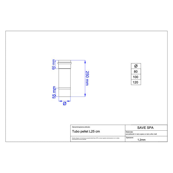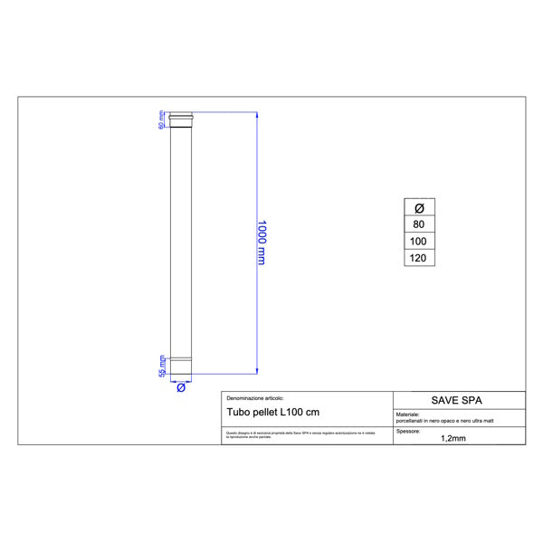 SAVE TUBO PER STUFE PELLETS PORCELLANATO NERO OPACO