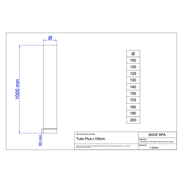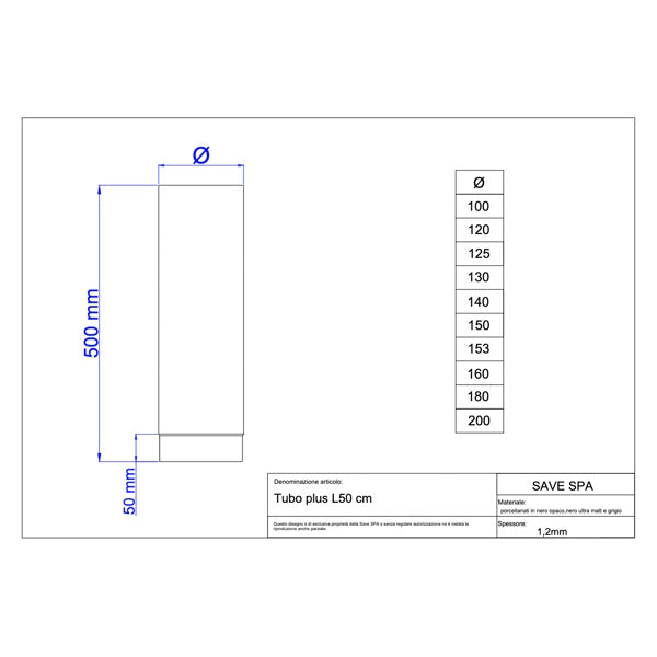 SAVE TUBO PER STUFE PLUS PORCELLANATO NERO OPACO*