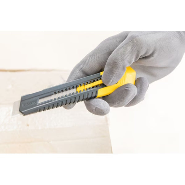 Stanley cutter SM18. Corpo in ABS. Bloccalama a dentatura obliqua. Lama a spezzare da 18 mm. a 8 elementi. Specifiche... Per saperne di più