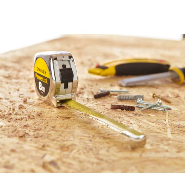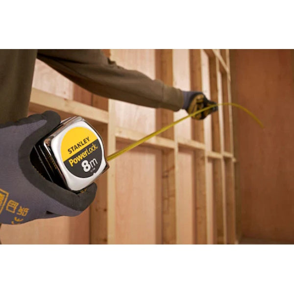 STANLEY FLESSOMETRO POWERLOCK CASSA IN ABS CROMATO MT 8 NASTRO MM25