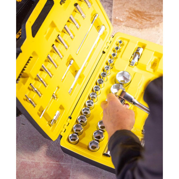 Stanley assortimento di 49 chiavi a bussola esagonali e accessori da 3/8" art.FMMT82684-1. Cassetta in materiale sintetico con chiusure metalliche.... Per saperne di più