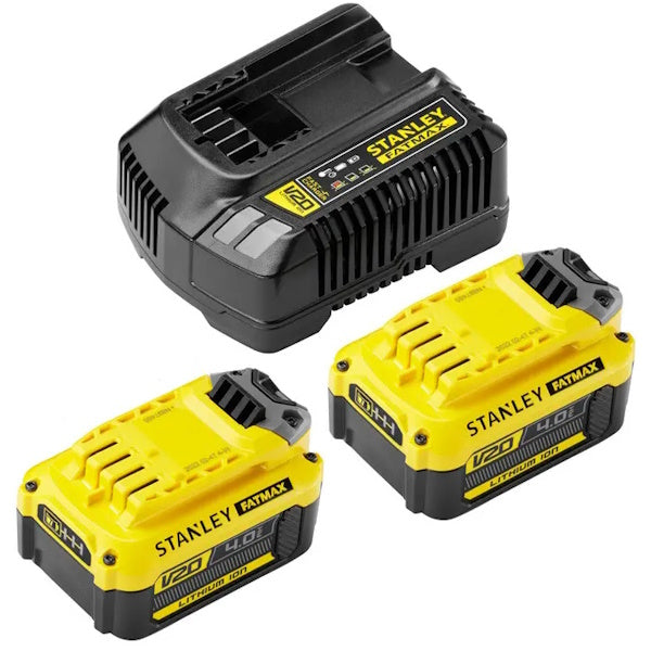 • Il kit inoltre contiene 2 batterie da 4.0 Ah V20, 1 caricabatterie e una cassetta Stanley gran volume Pro-Stak art. FMST1-71971.