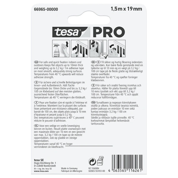 Tesa nastro biadesivo PRO 66965 Mounting Trasparente art.66965. Tesa Mounting PRO Trasparente fissa oggetti piatti sia in interni che esterni... Per saperne di più