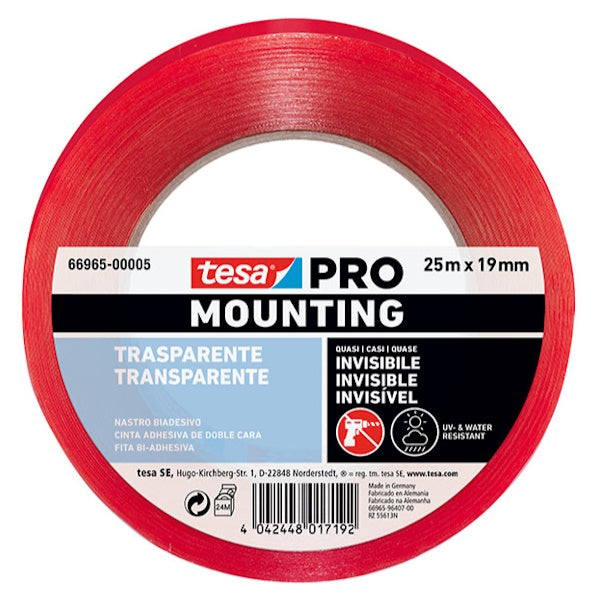 Tesa nastro biadesivo PRO 66965 Mounting Trasparente art.66965. Tesa Mounting PRO Trasparente fissa oggetti piatti sia in interni che esterni... Per saperne di più