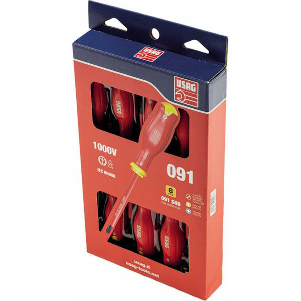 Usag 091 SH8 serie di 8 giraviti isolati a taglio a croce Phillips e a croce Pozidriv - Supadriv. Giraviti... Per saperne di più