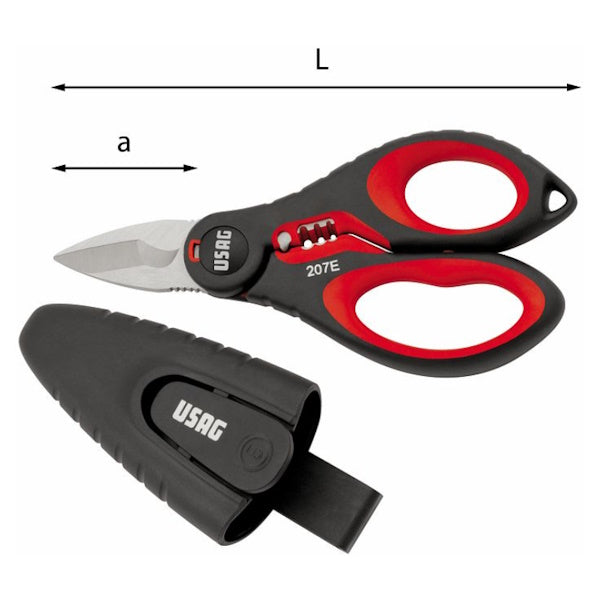 Usag forbici professionali per elettricisti lame diritte art.207 E. Struttura integrale in acciaio inox (lama e manici interni). Lama microdentata... Per saperne di più