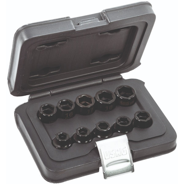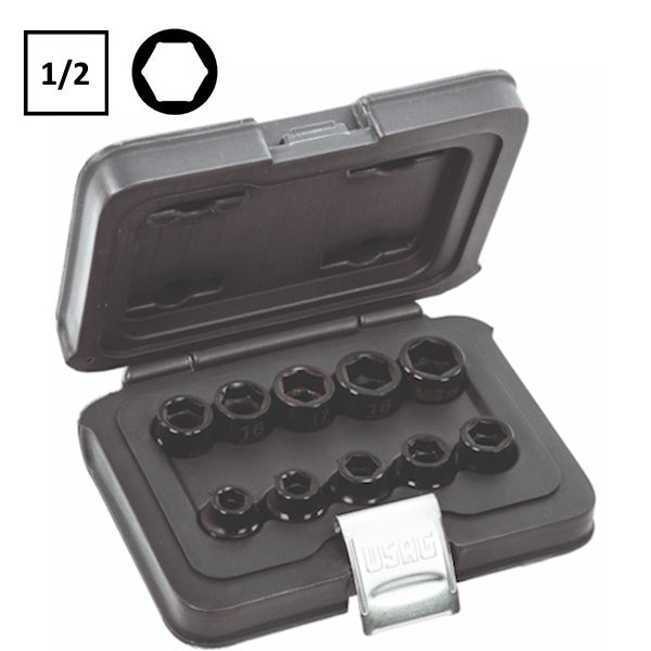 Usag assortimento di 10 chiavi a bussola a macchina esagonali ribassate da 1/2" art.235 1/2 MB/C10. Contenitore compatto in materiale... Per saperne di più