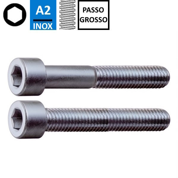 Vite testa cilindrica esagono incassato in acciaio inox A2. Filettatura metrica ISO a passo grosso. Cava esagonale. Specifiche articolo Attributo... Per saperne di più