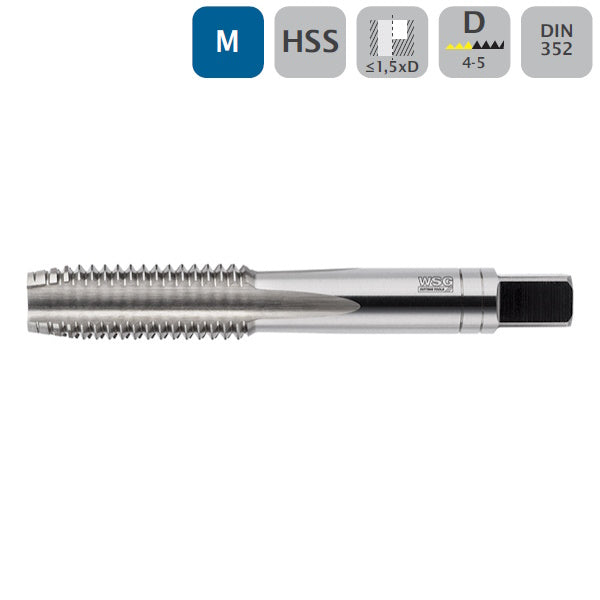 WSG maschio a mano art.6201. Filettatura metrica ISO passo grosso (DIN 13). Intermedio per fori passanti e ciechi. Caratteristiche: scanalature... Per saperne di più